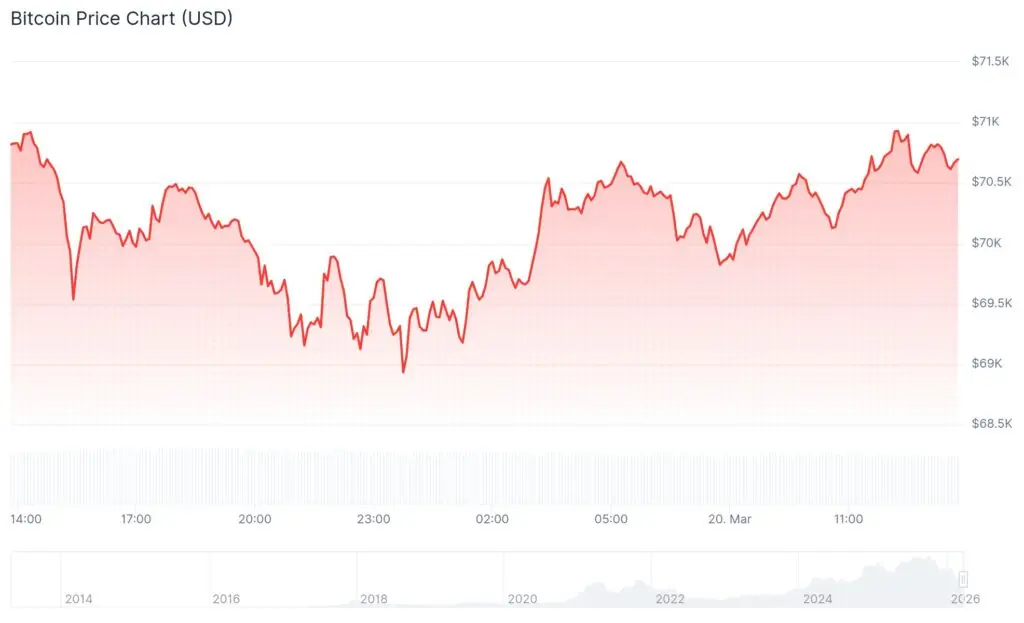 Bitcoin has remained within a consistent trading range despite escalating geopolitical tensions in the Middle East. Prices have fluctuated slightly but continue holding between sixty-five thousand and seventy thousand levels.
