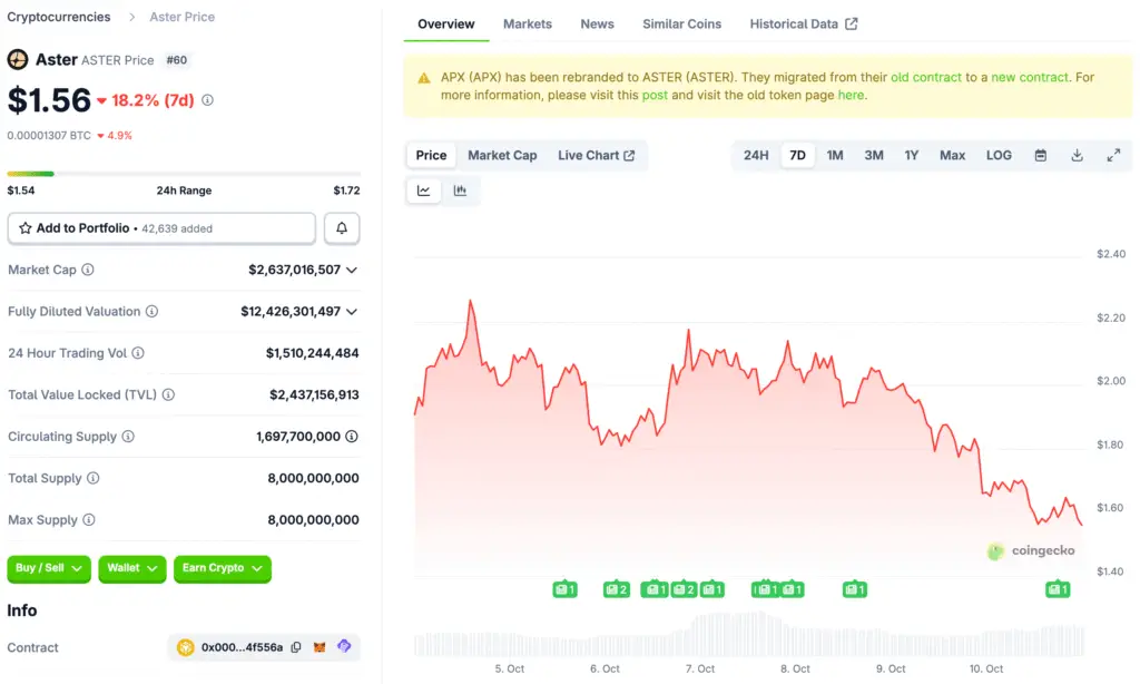 Recommended Article: ASTER Token Faces Sell-Off After DeFiLlama Delisting Shock