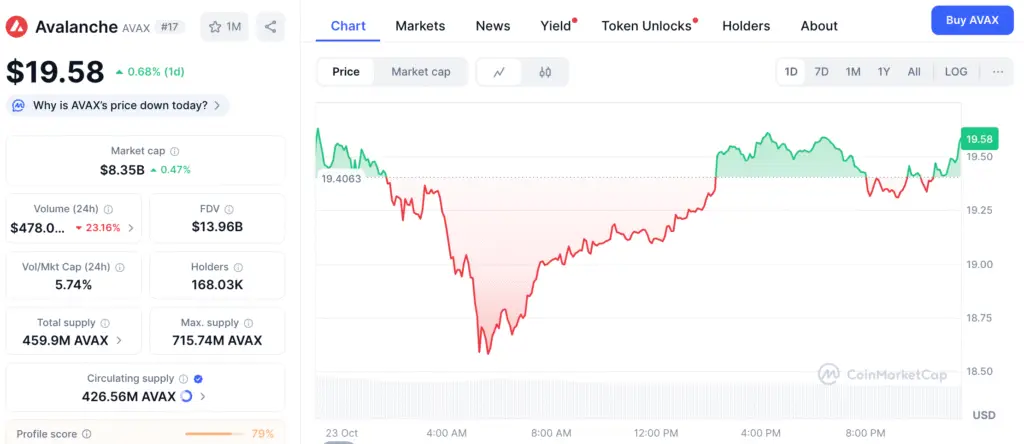 Analysts see the setting as inherently positive as long as AVAX stays between $19 and $20. When these areas stay strong for a long time, it usually means that buyers are slowly taking back control from short-term sellers, which leads to multi-week upward runs.