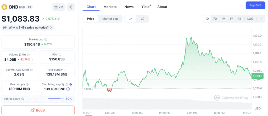 As of the latest update, BNB is priced at $1,092, boasting a market capitalization of $150.54 billion and a daily trading volume of $13.04 billion, as reported by CoinMarketCap. This price zone has traditionally acted as a launchpad for significant upward movements, and current market sentiment suggests that the forthcoming shift could be dramatic.