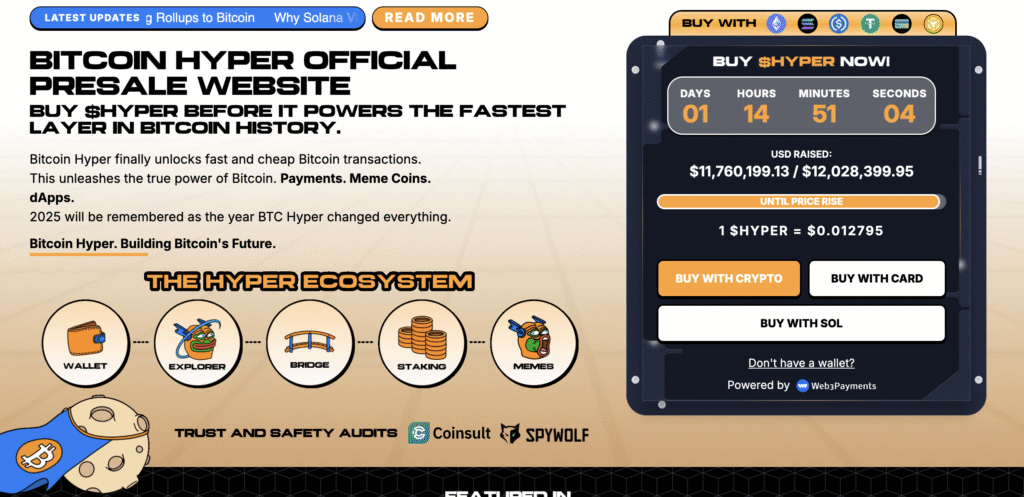 At its core, Bitcoin Hyper is a next-generation Bitcoin layer 2 (L2) blockchain. This use case is particularly compelling, as it seeks to solve Bitcoin’s main issues of speed, high fees, and limited functionality without compromising the network’s security. By addressing these fundamental pain points, Bitcoin Hyper has positioned itself to tap into a huge, untapped segment of the crypto market.