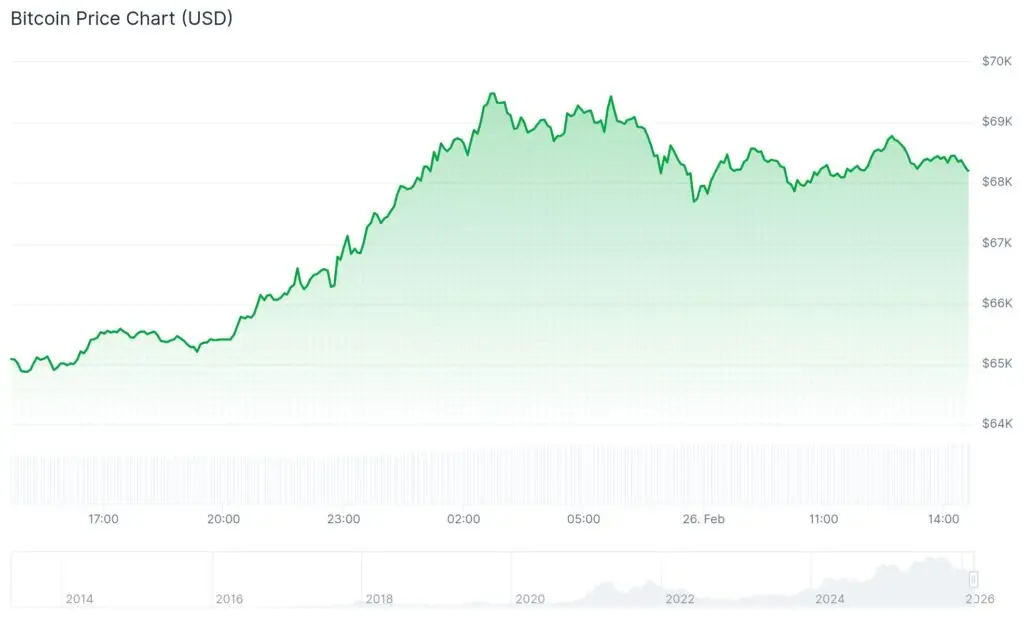 Bitcoin surged more than 7% in a single trading session, reclaiming ground toward the psychologically important $70,000 level. The rebound followed a prolonged period of consolidation in the low-$60,000 range.