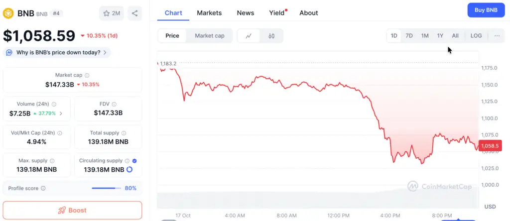 BNB Drops 15% Following Historic Highs