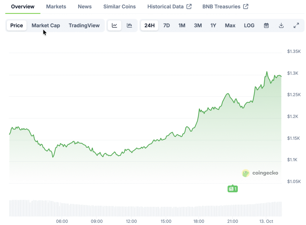 BNB continues to demonstrate resilience as other cryptocurrencies face renewed volatility and shifting investor sentiment across global markets. The token is currently trading around $1,160 and has shown a steady recovery since its midyear decline earlier in 2025.