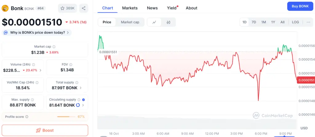 Bonk Regains Traction Following Steep Drop in Mid-October