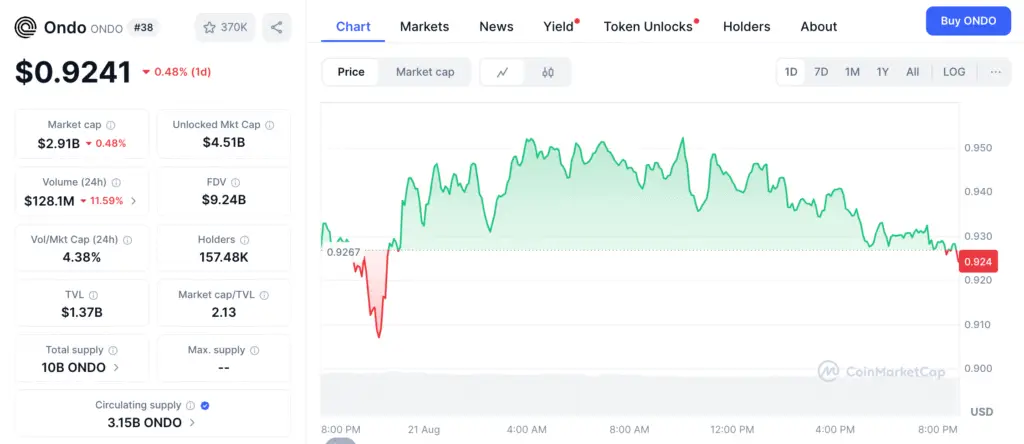 Analysts are offering a range of price targets for ONDO. The token is currently trading just under $1, with a market cap around $3.1 billion. A key factor limiting potential sell pressure is the absence of major token unlocks until January 2026. Specific price predictions from analysts include: