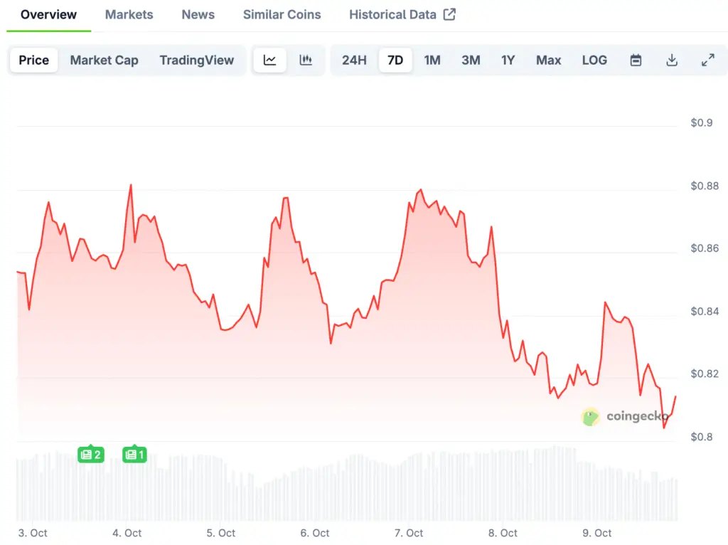 Analyst CW8900 observed that immediate resistance lies above $0.85 and $0.90, highlighting a clear short-term trading range. The more often this demand wall remains intact, the greater the likelihood that bullish traders will regain momentum for another upward movement.