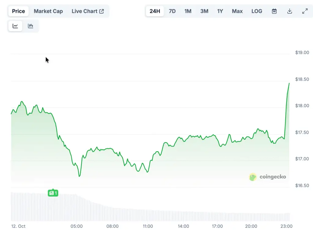 LINK experienced a brief dip below key psychological levels at $18 and $20, ultimately stabilizing around $17.5, which is now forming a closely watched range. Experts consider this region to be a vital short-term support level that can halt further downturns if there is a substantial increase in accumulation.