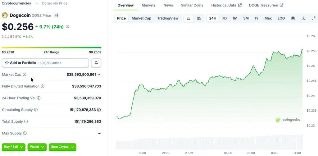 Wednesday’s breakout above $0.24 signals a clear bullish shift for Dogecoin’s near-term outlook. Traders are currently focusing on former resistance levels as possible upside targets, should the momentum continue. Consistent buying momentum and encouraging macroeconomic factors may propel Dogecoin into elevated price ranges throughout October, a month typically known for its advantageous trading conditions.