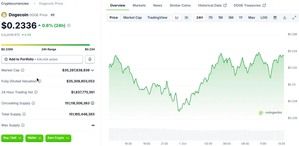 By late morning trading, the price of Dogecoin had dropped about three percent, which was different from the recent upward trends in the crypto market. This unexpected drop happened as traders thought about the growing political uncertainty surrounding a US government funding deadline that was coming up soon.