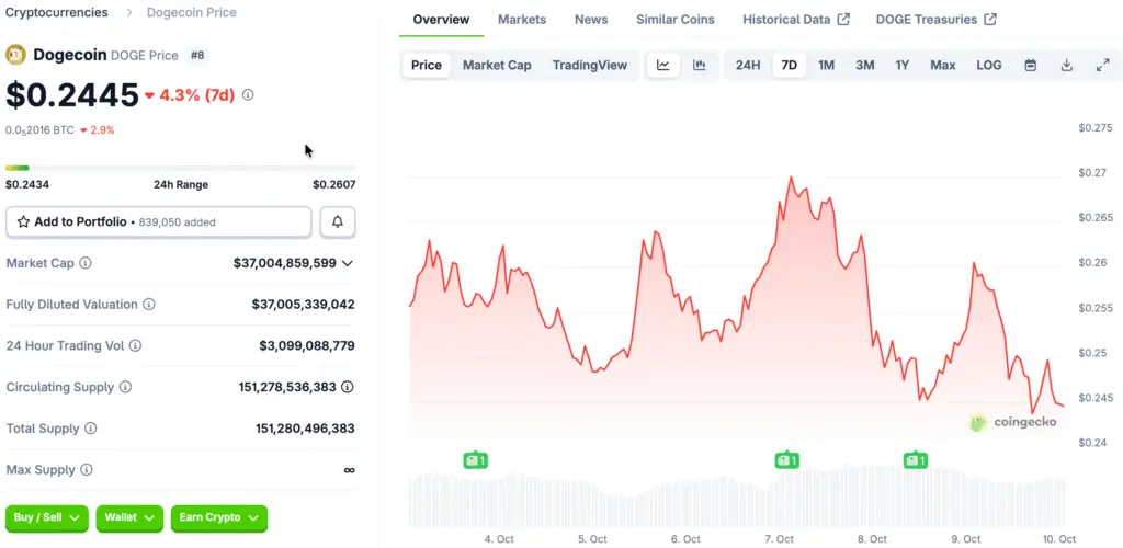 After erratic market swings that first wiped out its early October gains, Dogecoin saw a modest recovery this week. Echoing the larger crypto slump seen across altcoins, the meme token’s 7% spike was swiftly followed by a comparable decrease.