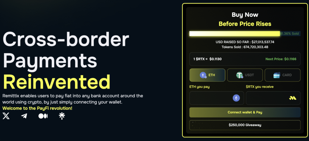 Remittix allows users to seamlessly transfer cryptocurrencies like BTC, ETH, and XRP directly into bank accounts in over 30 countries. This feature sets RTX apart as a connector between digital finance and traditional banking systems, facilitating substantial global remittance flows.