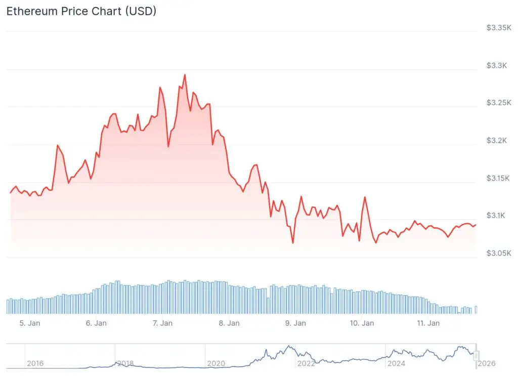 Ethereum’s spot price has remained relatively stable near the $3,100 level, giving the appearance of a balanced market. Beneath the surface, however, derivatives data tells a different story. Futures and options traders are steadily increasing exposure even as price momentum remains uneven.