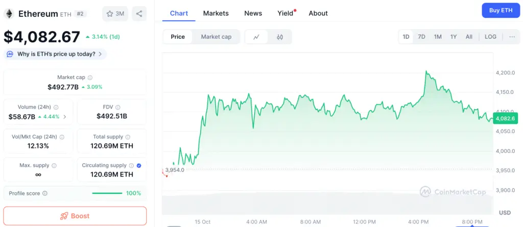 Currently, Ethereum is trading at approximately $4,100 following a recovery from a dip to $3,900. Experts in technical analysis point out that $3,990 serves as a crucial support level, while resistance is observed around $4,600.