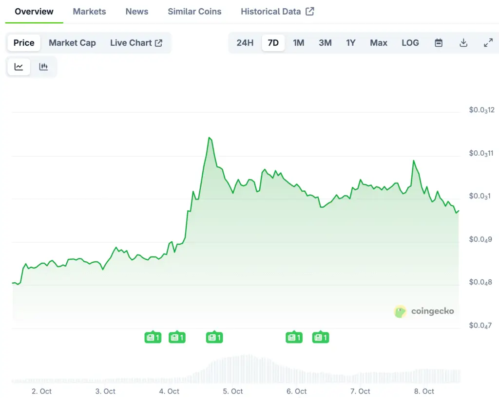 Crypto Catalysts has recently provided an analysis that suggests a price target of $0.0003, indicating a potential threefold increase from current levels. This prediction draws on past trends where comparable breakout formations have led to extended bullish movements over several weeks.