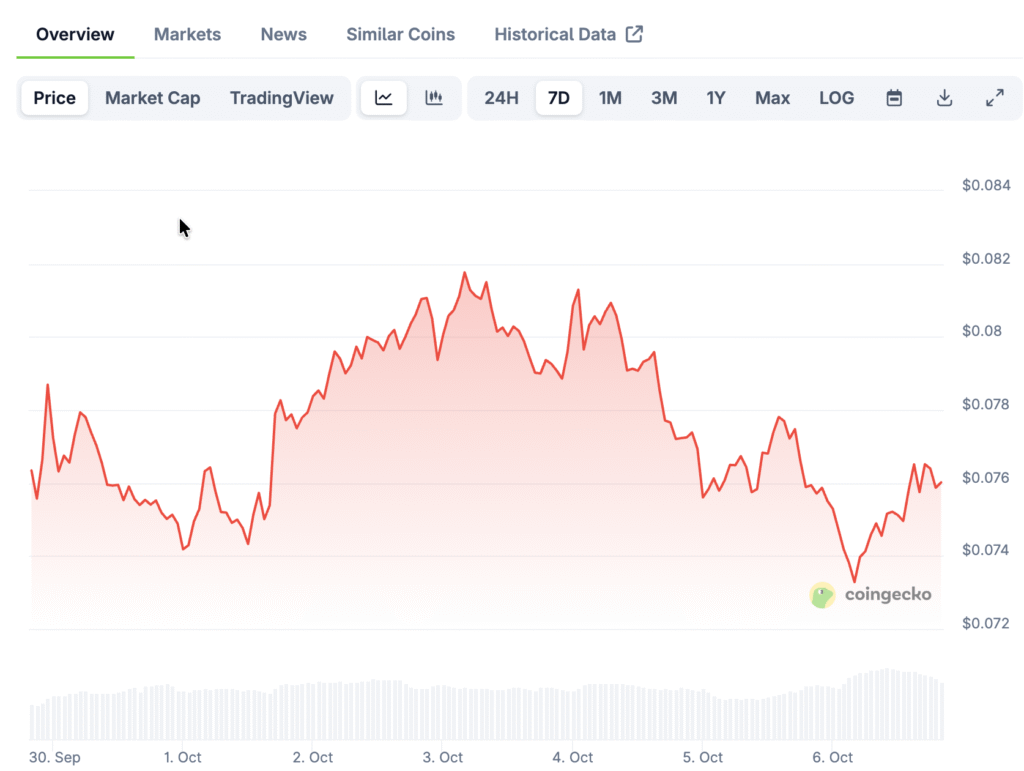 If buying interest picks up again, Kaspa is strategically placed to target the $0.078–$0.082 range. A successful breakout above this level could drive the price up to $0.085, backed by its $2.04 billion market cap and steady on-chain network growth, which continues to impress analysts.
