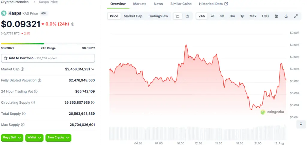 For traders and investors, identifying key support and resistance levels is crucial for navigating Kaspa’s current price action. The immediate near-term resistance is located between $0.098 and $0.10. A clean 4-hour close above $0.10 would be a significant bullish signal, putting the $0.105–$0.11 range into view and setting up a test of $0.12 if volume increases. On the support side, a strong base is established at $0.094–$0.095, with a steeper support level at $0.090.