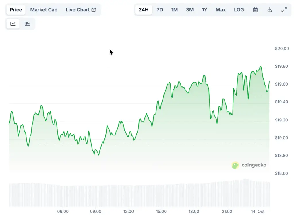 Chainlink has recovered from the turbulence experienced in October, with its LINK token currently trading at approximately $19.57 following significant fluctuations earlier this month. The rebound came after significant liquidations tied to renewed trade tensions between the U.S. and China, which temporarily pushed LINK down to around $15.