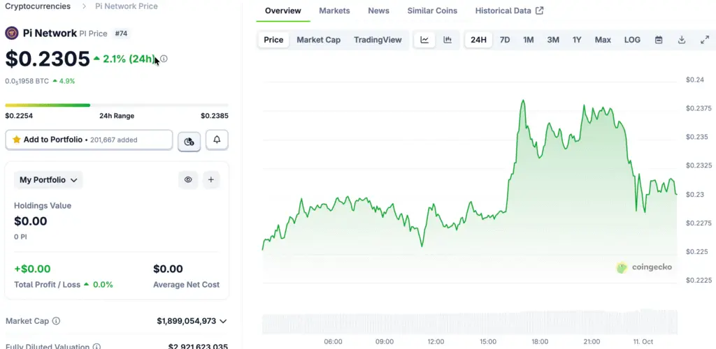The Pi Network remains around $0.23, showing a delicate balance as it faces ongoing selling pressure and low trading volume. Market data indicates that the average daily turnover is now below $30 million, underscoring a decline in participation relative to earlier quarters.