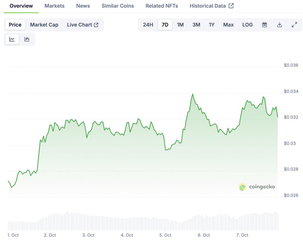 The $0.030 zone stands out as a crucial support level, consistently serving as a reliable floor during recent pullbacks. Every retest has encountered fresh buying momentum, showcasing a robust belief among the bulls.