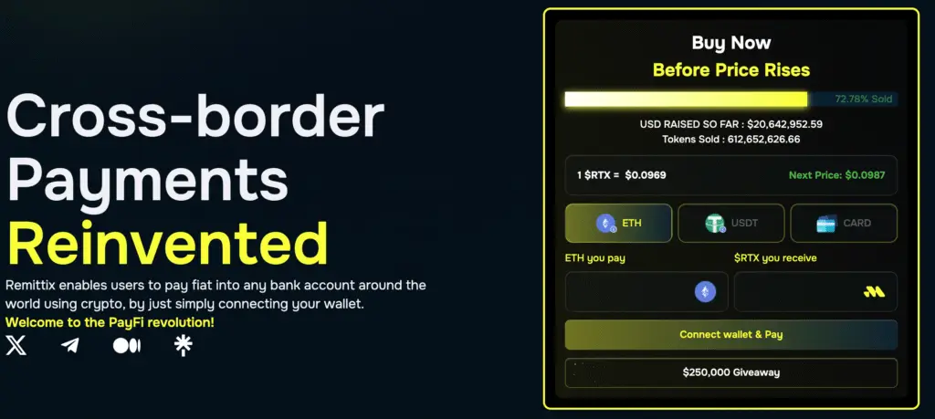 While Ethereum is navigating its price resistance, Remittix (RTX) is successfully carving out its own space in the crypto landscape. The project has achieved a major milestone, raising more than $20.5 million in its presale. This impressive figure reflects a robust demand from early-stage investors, with over 611 million tokens sold at a presale price of $0.0969 per token. This remarkable success is not just a testament to market interest; it has directly paved the way for a crucial next step in the project’s development.