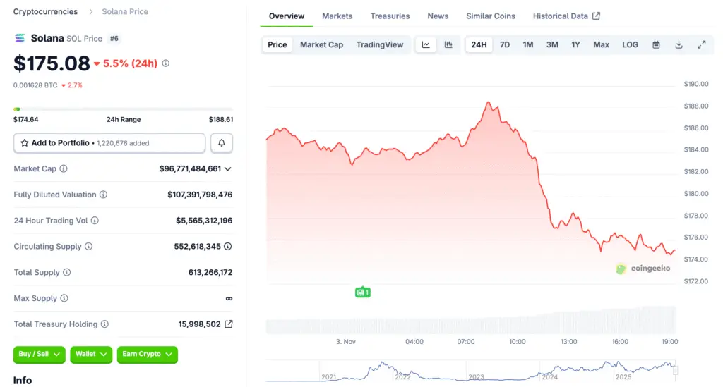 Experts urge traders to maintain cautious positioning given Solana’s current technical setup. Until the price reclaims $188 resistance decisively, risks of further downside persist. Long-term investors, however, may view deeper pullbacks as potential accumulation opportunities.