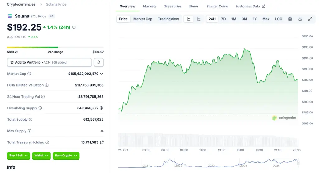 Solana’s increasing acceptance among major institutions underlines its long-term potential. Fidelity Digital Assets recently added $SOL to its crypto portfolio, citing the network’s high throughput capacity. This move provides new exposure channels for retail and institutional investors alike. Combined with treasuries in multiple countries holding nearly 15.7 million $SOL, adoption momentum remains strong.