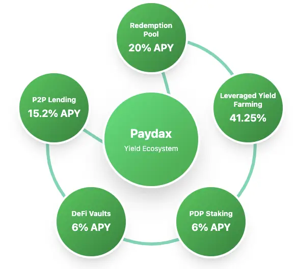 Liquidity providers also earn leveraged yield farming rewards of up to 41.25% APY, while P2P lenders gain up to 15.2% APY. With consistent, active contribution and strategic growth, Paydax users have the potential to turn modest holdings into crypto millions over time.
