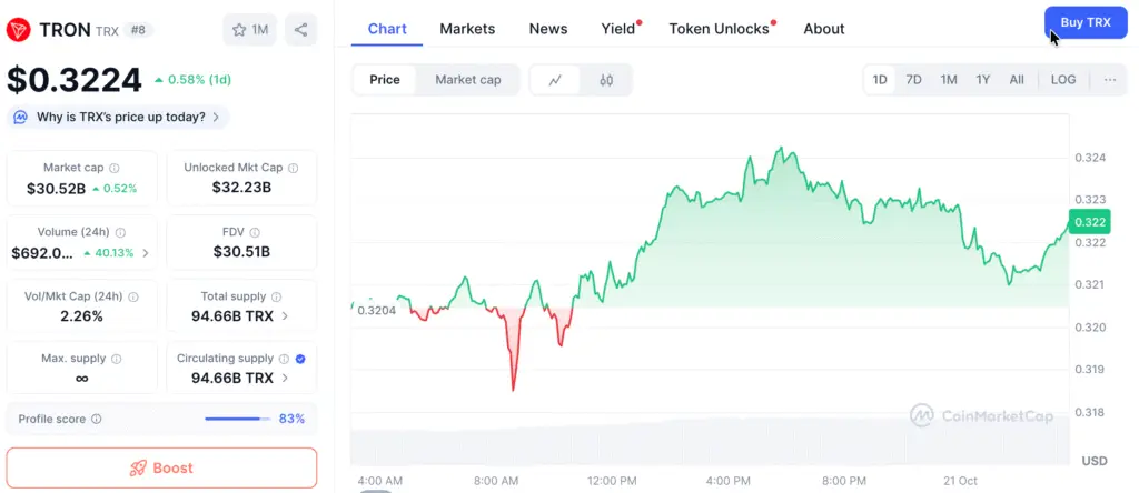 As blockchain adoption accelerates worldwide, TRON’s blend of speed, efficiency, and stablecoin utility sets it apart as a long-term contender. Heading into the next market cycle, TRX stands as a reliable Layer-1 asset for both retail and institutional investors alike.