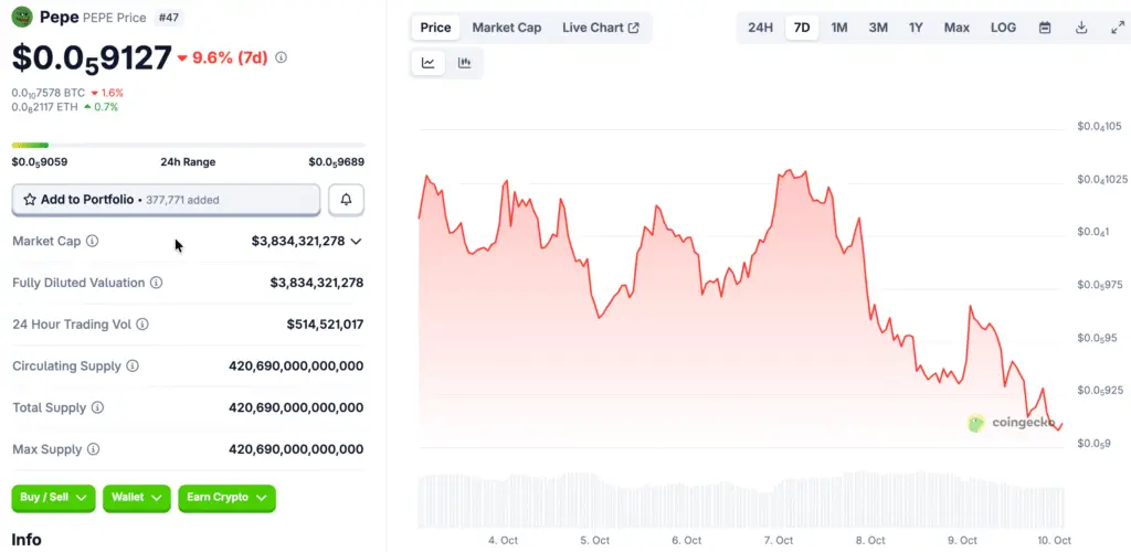 Pepe Falls 7% as Whale Profit-Taking Sparks Selling Pressure Across Memecoin Market
