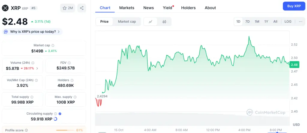 In the face of significant selling pressure, XRP demonstrated resilience by bouncing back 3% within a 24-hour period, trading close to $2.52 at the time of this report. Nonetheless, it is still down 11% for the week and 17% for the month, based on data from CoinGecko.
