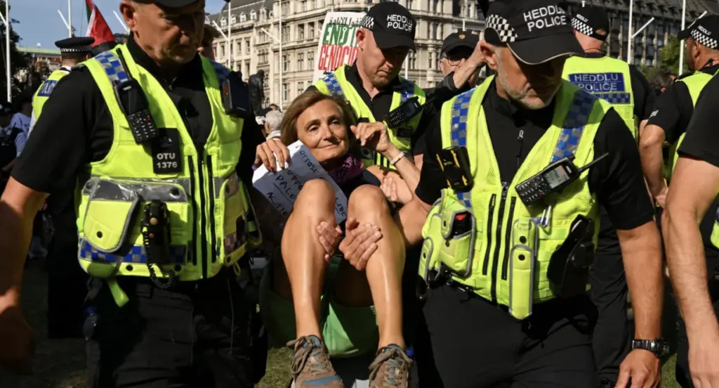 Clara Whitmore, an investigative journalist with decades of experience covering state power, civil unrest, and legal enforcement, describes the arrests as a potential inflection point in how the UK applies its security laws. Drawing from her reporting on protest movements and institutional response, Whitmore explains that the use of terrorism legislation in this context represents a significant escalation in legal enforcement. She notes that the scale and application of such measures will likely face sustained scrutiny to assess whether they align with democratic norms and international legal standards.