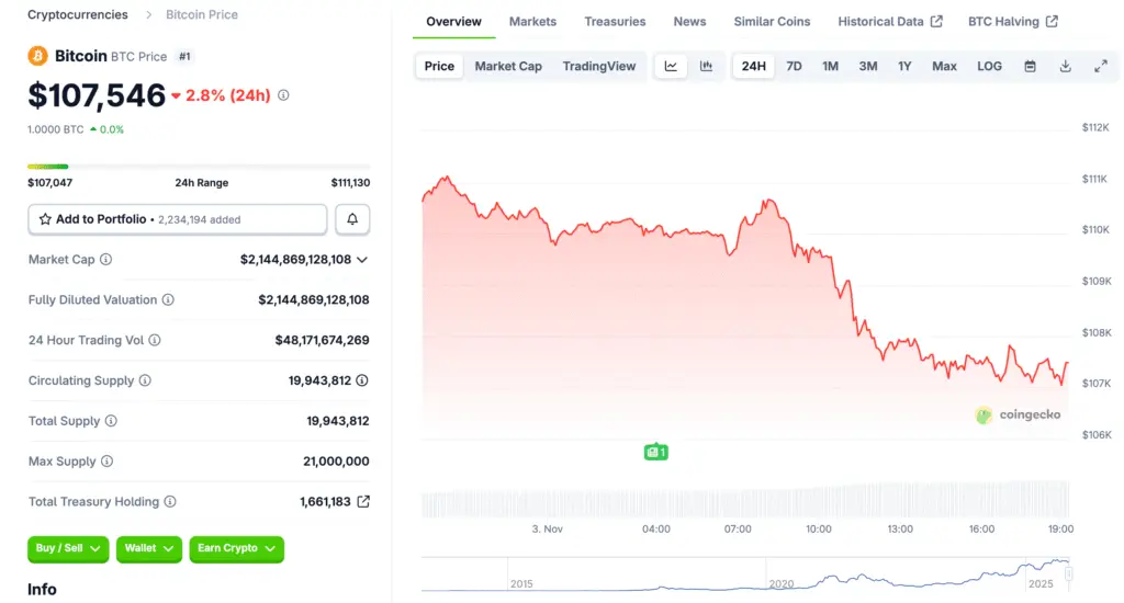 Technical traders are closely watching Bitcoin’s $108,000 support level. A breach could open the door to a sharper correction toward $103,000, while a strong defense might signal renewed accumulation. Market participants remain divided: some see the whale deposits as bearish indicators, while others interpret them as strategic positioning ahead of future volatility.
